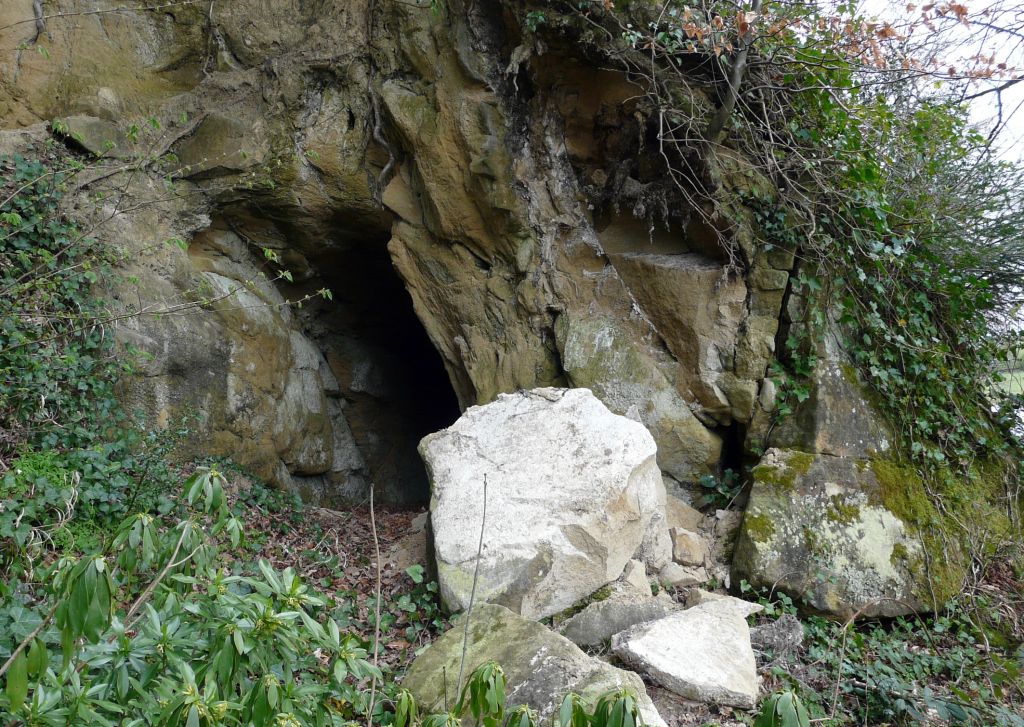 In February 1826 Hutton created the feature known as the Grotto, Cave or tunnel or more recently the Robber’s Cave. This is a tunnel through a rock on the eastward riverside path and is marked as ‘Grotto’ on the Ordnance Survey 6”1856 map (Figure 7). On the 9th of February Hutton’s men had got 29 feet into the rock from the opening and on the 11th ‘the men began to cut the rock at the outside to get up to the place I wished it to come out at’. By the 17th they had ‘got an excellent road through’ (NYCRO ZAW TD:D). The sides and roof had to be repaired in 1892 as it had fallen in due to severe frosts (CCM; Figure 14).