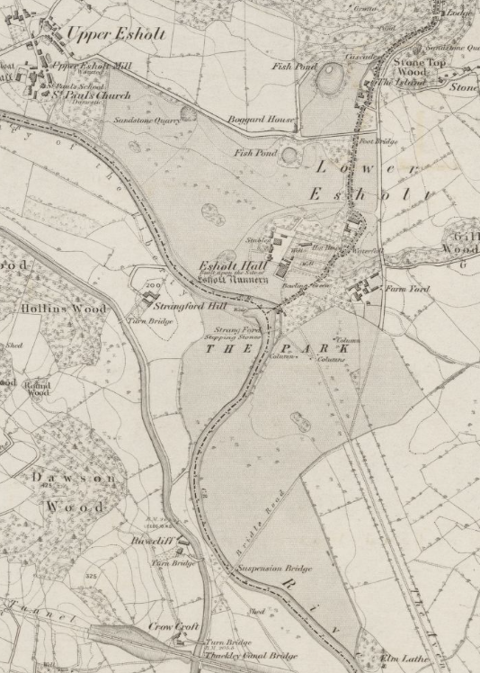 Figure 7 – Esholt park and gardens. Ordnance Survey 6” 1st edition, surveyed 1847-8, published 1851. National Library of Scotland CC-BY.