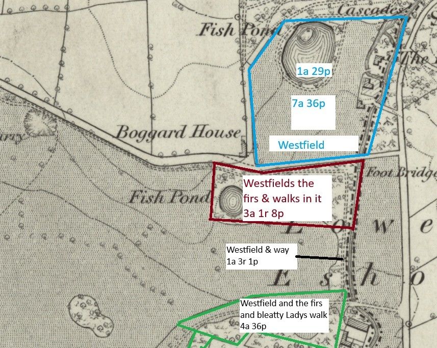 This was first laid out before c. 1720 between the walled enclosure around the hall and the public road in the former Westfield. It comprised of 4 acres that was described as ‘Westfield and the firs and Cleatty (?) Lady’s Walk’ next to the hall grounds and ‘Westfields the firs & walks in it’ of 3¼ acres, with a path linking the two areas. This was gradually thinned possibly during the landscaping done between 1801 and 1806, with a small fish pond added to the northwest. To the east and south of the hall there was further planting, again probably c. 1801-6.