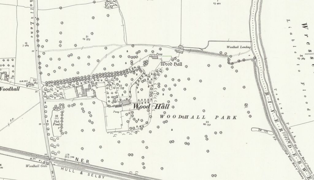 ‘The Charming and Substantially Built Mansion known as “Wood Hall”, commanding delightful views, standing in beautiful grounds and a well-timbered Park, approached by a magnificent Avenue of Forest Trees leading out of the Highway from South Duffield to Brackenholme…