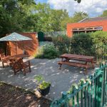 Since we started the development, we have weeded the area, revamped the shed, cleaned the paths, added tables and chairs and started to add some planting.