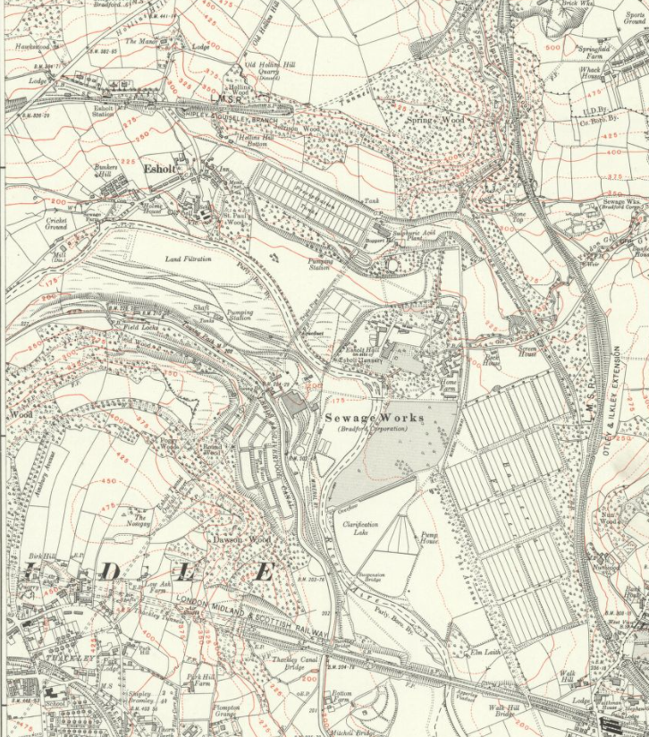 Figure 12 – Esholt estate with sewerage works. Ordnance Survey 6” revised edition, revised 1934, published 1934