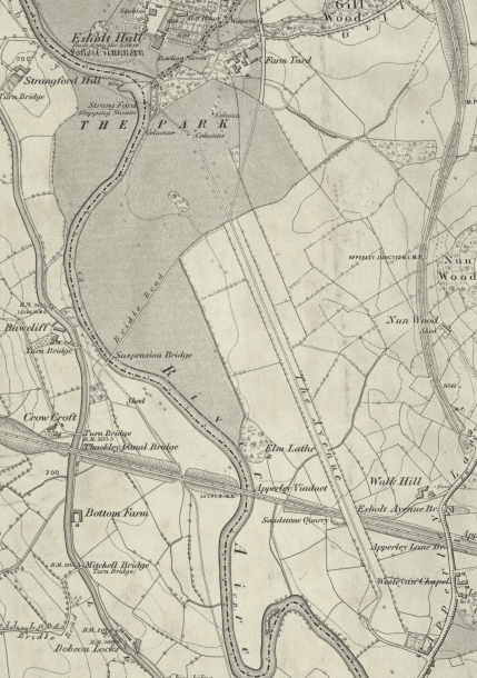 Figure 7 – Esholt park and gardens. Ordnance Survey 6” 1st edition, surveyed 1847-8, published 1851. National Library of Scotland CC-BY.