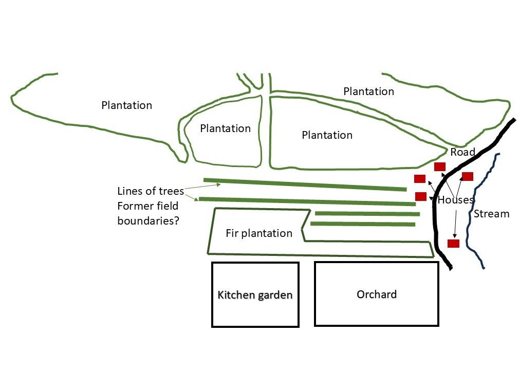The priory buildings had a ‘small orchard’ in 1539, described as ‘the Convent orchard lying without the said wall of the East side of the house and is well paled round about’ (Brown 1886, 322) that probably was on the site of the later kitchen garden. There was a second separate orchard that a later survey of 1612 (WYASL WYL500/854) said covered 2r 30p and adjacent ‘Horse Coppice’ of 1a 1r 17p, probably to the north and east of the buildings.